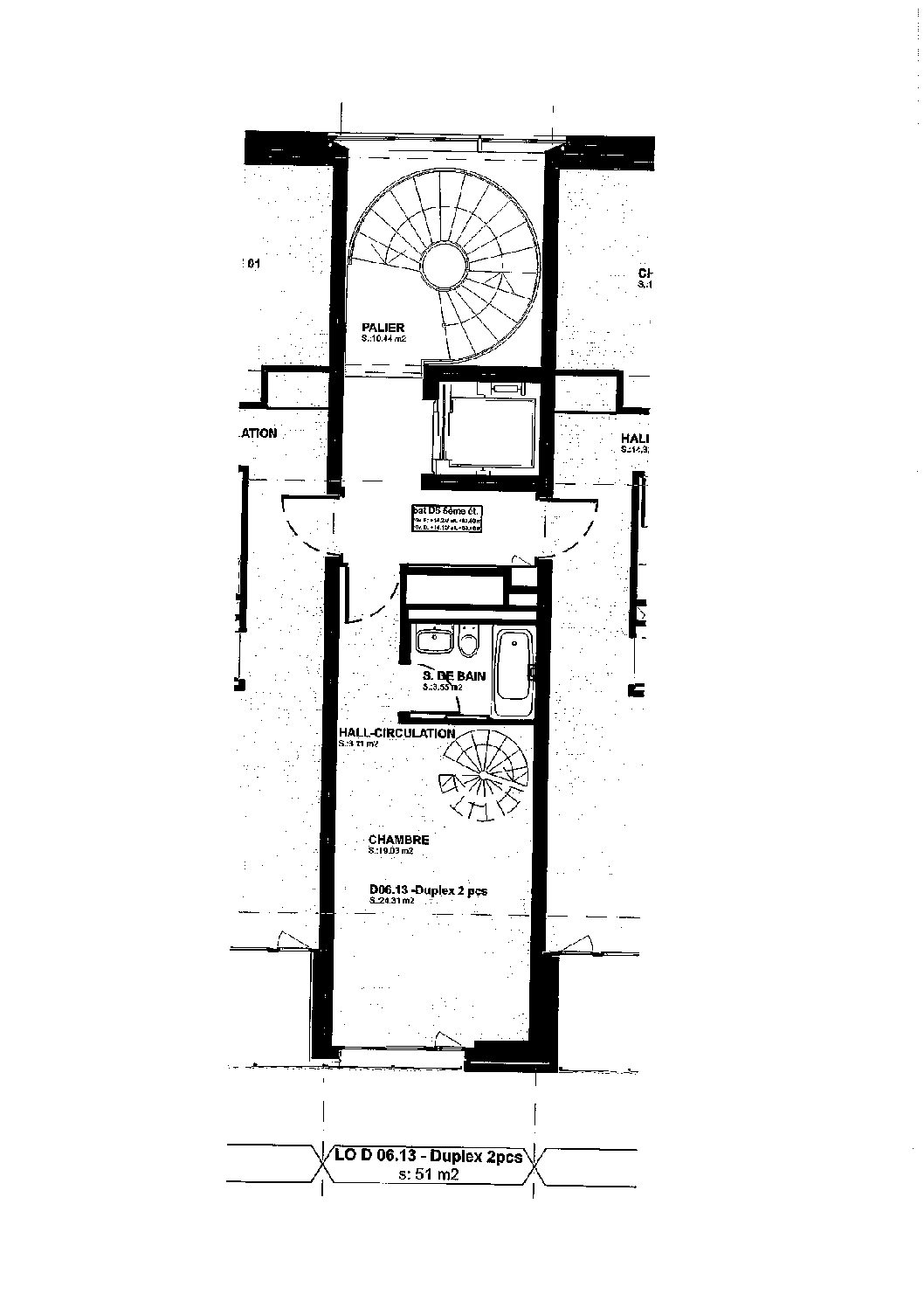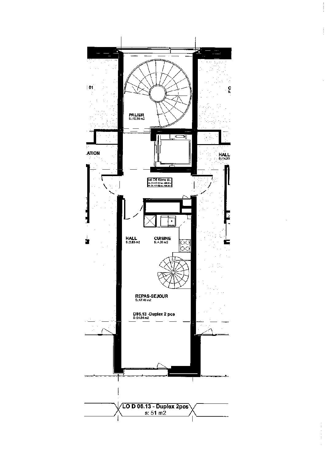 2.5 pièces en duplex au 5ème & 6ème étage, 51m2, meublé.